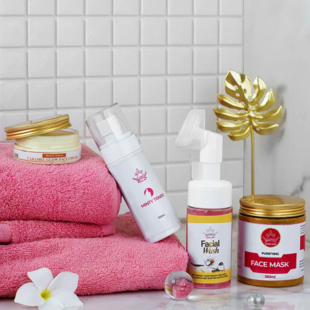 - It is a complete set that includes a face cleanser, Face Soap, Face Mask, and caramel face cream—all the products you need to have perfect skin.