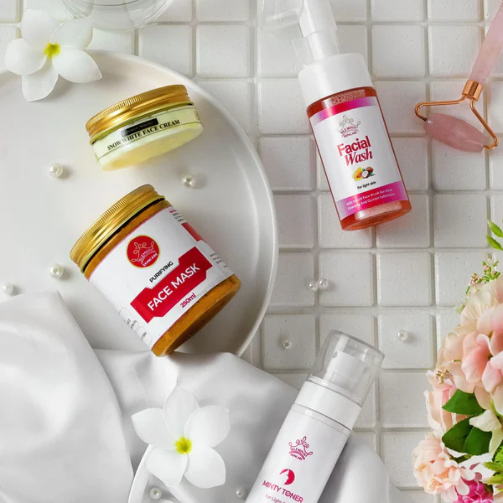 It comes with face cleanser, Snow White face cream, face mask and face wash.